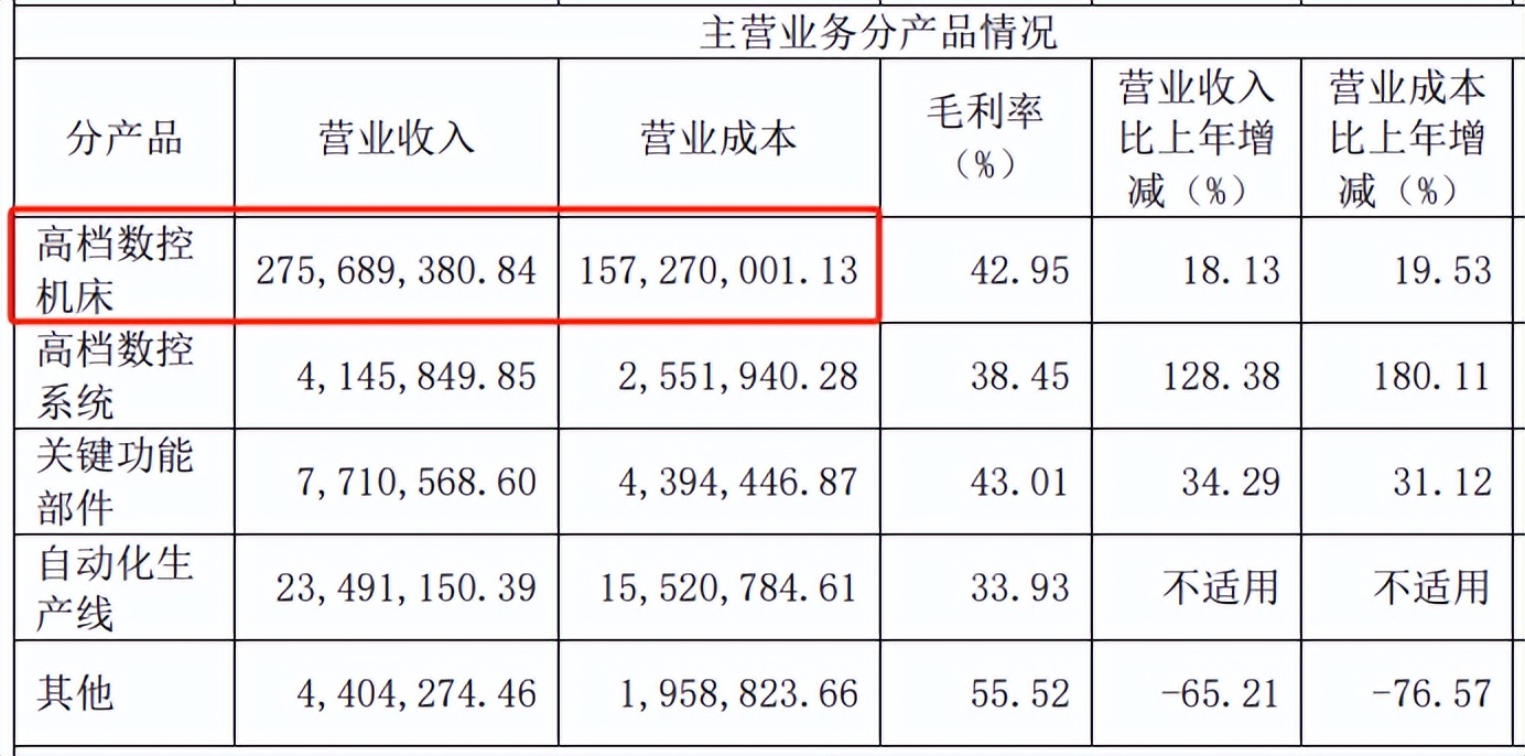 从2022年公司年报数据看,公司在2022年高档数控机床营收高达2.76亿元,营收占比超过87%,并且毛利率是最高的。可见高档数控机床是公司核心利润来源,业务很专注。