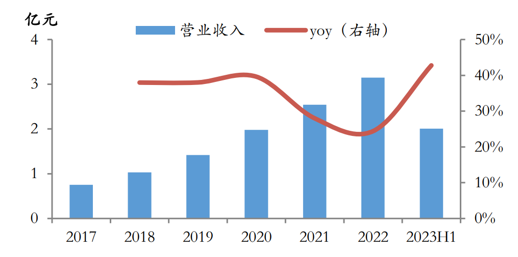 营收角度看,2017到2022年从0.75 亿增长到了3.15亿,年复合增速高达33%。净利润从2017年的710万增长到了2022年的6045 万元,年复合增速超过了53%。