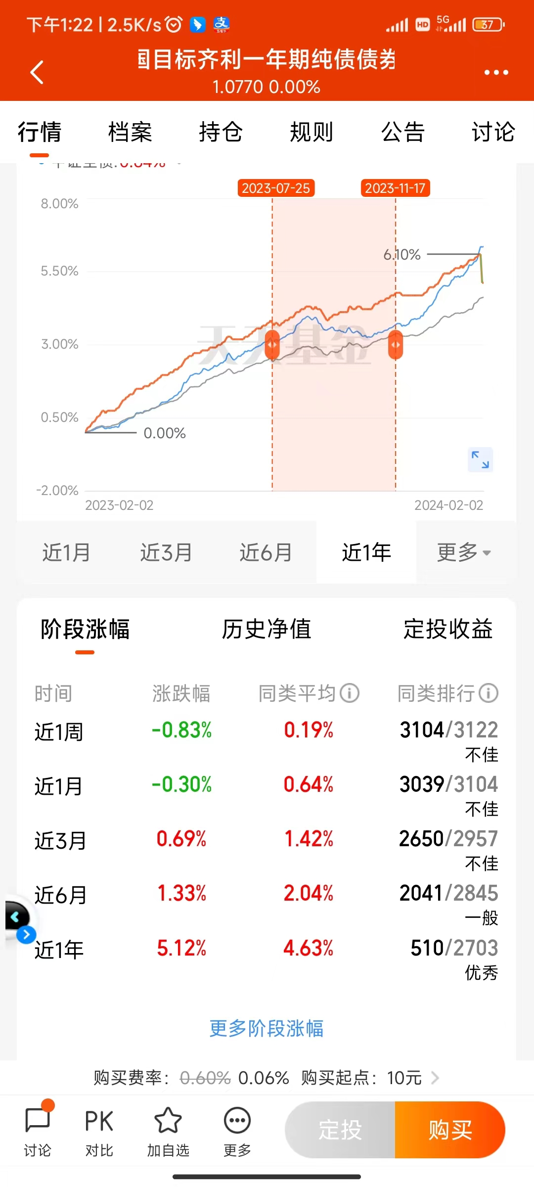 小沐发现了一只$富国目标齐利一年期纯债债券(OTCFUND|000469)$纯债,要比一些债券更稳了!咱就是说以稳为主!从它的业绩来看,近一年的业绩上涨了512割恐龙蛋,慌经理从业了将近11年,管理这个基金也是高达7年之久,从它的一个年化回报来看,远超了市面上所有的基金,达到了4.97%,如果长期一直持有,这个复利也是非常的多的!趁着现在没有限购,任何时候入场都是不迟的!