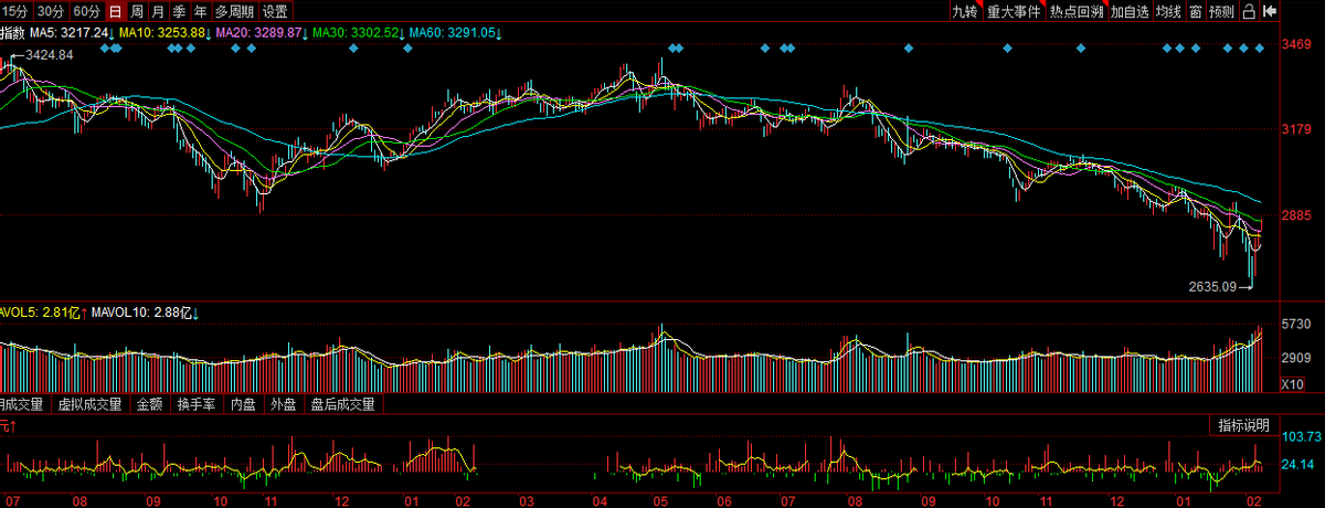 总算“国家队”及时出手,也立刻出台了暂停转融券卖空的利好举措,而且临近过年,A股的“村长”还换了,资金流动明显好转。