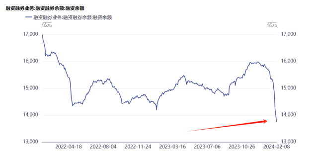 虽然2月8日市场上涨,但融资余额继续大幅下降170亿。