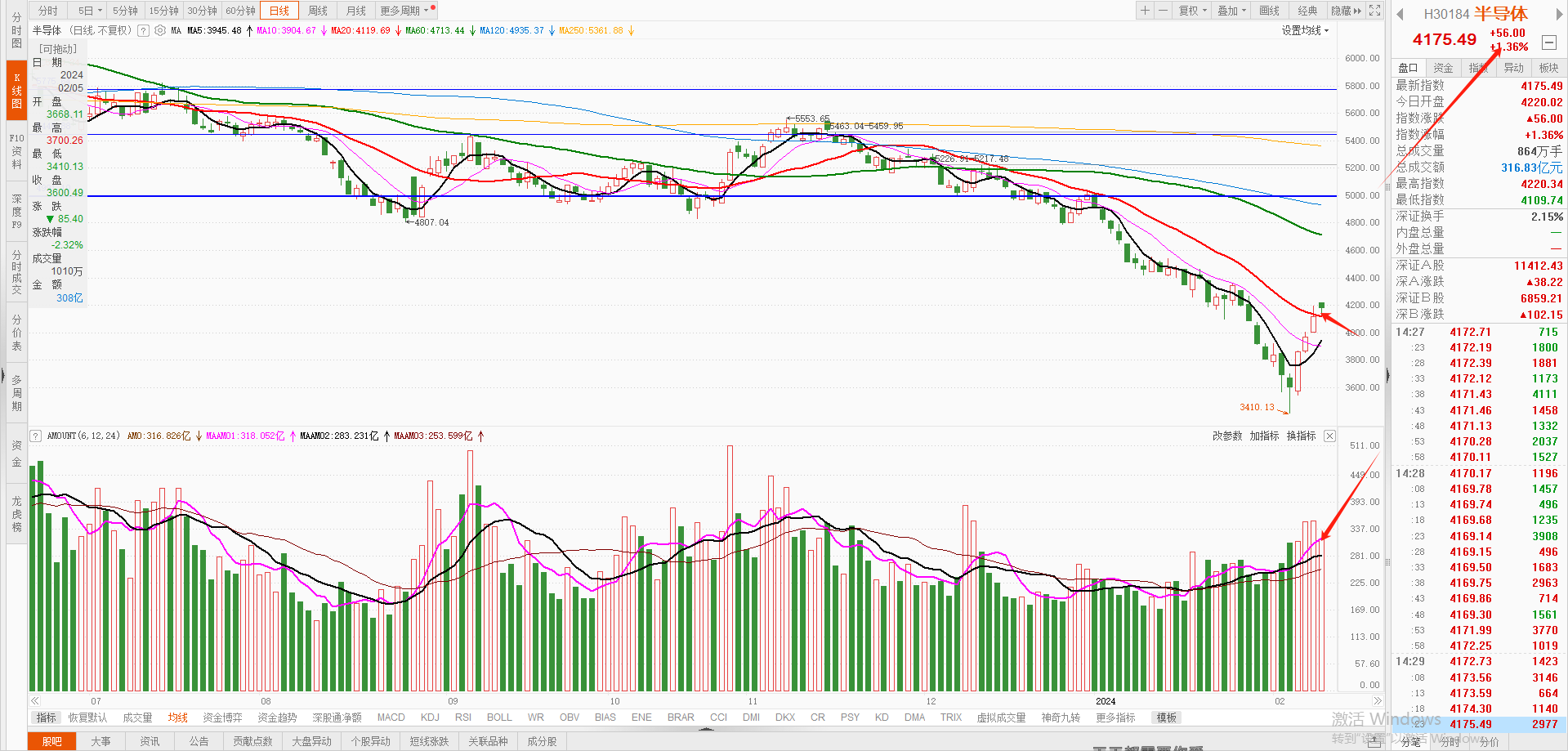 半导体板块也是这两天的事情了,因为是有算力,和今天的人工智能方向,托住了半导体。