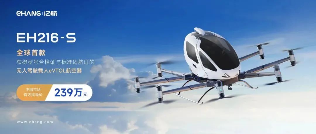亿航智能旗下EH216-S无人驾驶载人航空器系统在中国官方指导价为239万元人民币/架,相关价格将于 2024年4月1日起正式生效执行。