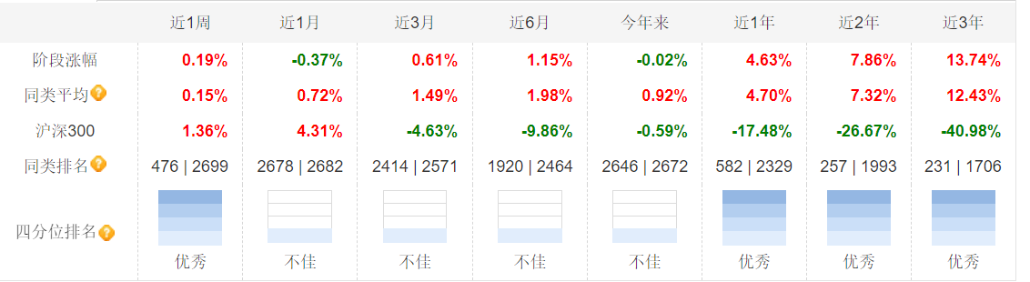 近3年收益率13.74%,远超银行3年定期存款利息,同期沪深300暴跌超40%,如果这期间配置了这款债基完全回避了市场大跌风险,还能获得不错的正收益。