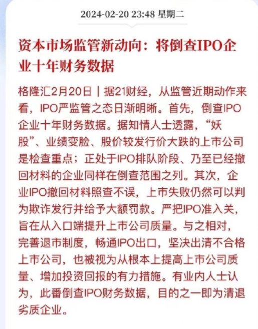 现在马上还有IPO财务造假倒查