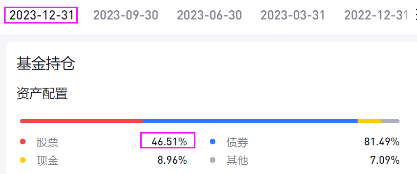 2023年四季度,在市场加速赶底时,股票仓位迅速由10.32%提高到46.51%。