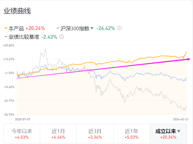 从其收益率曲线来看,一路上行,表现相当平稳,没有剧烈的波动与大幅回撤,在市场大跌时配置一些能很好的对抗风险,先加入自选跟踪着,待合适的时机来配置。