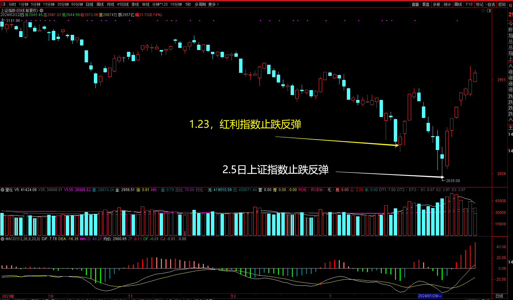 中证红利、低波红利指数于1.23日先于大盘止跌反弹。