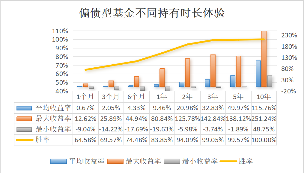 从数据统计结果来看,三类基金持有10年,胜率均可达100%。