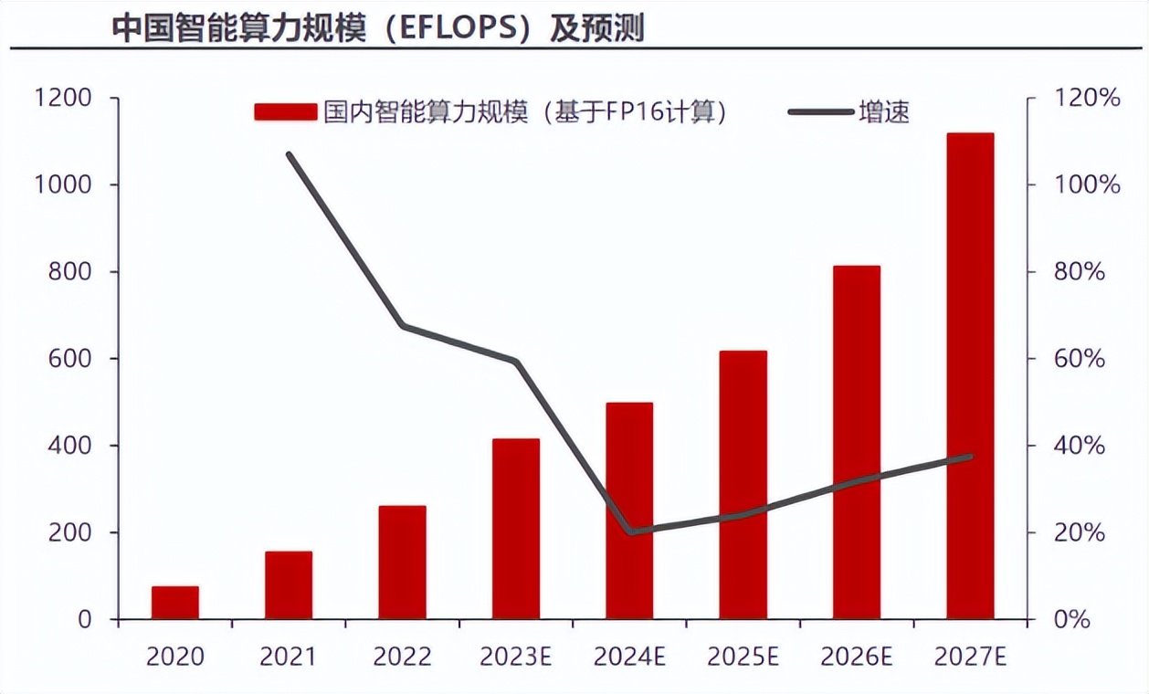2016到2022年,我国算力规模年复合增速高达46%,随着2023年人工智能的开始加速渗透,这个量在未来几年的增速会更大。