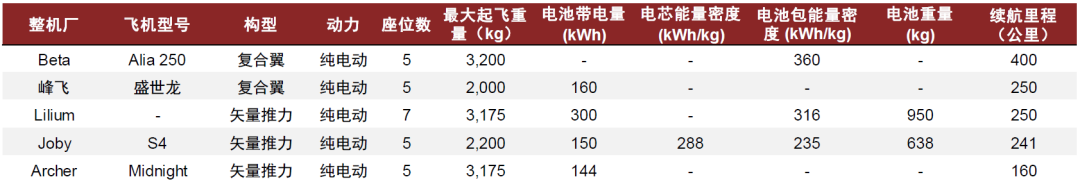 资料来源:《复合翼eVTOL电池需求及对动力总成安全性的影响》(丁水汀,2024),中金公司研究部