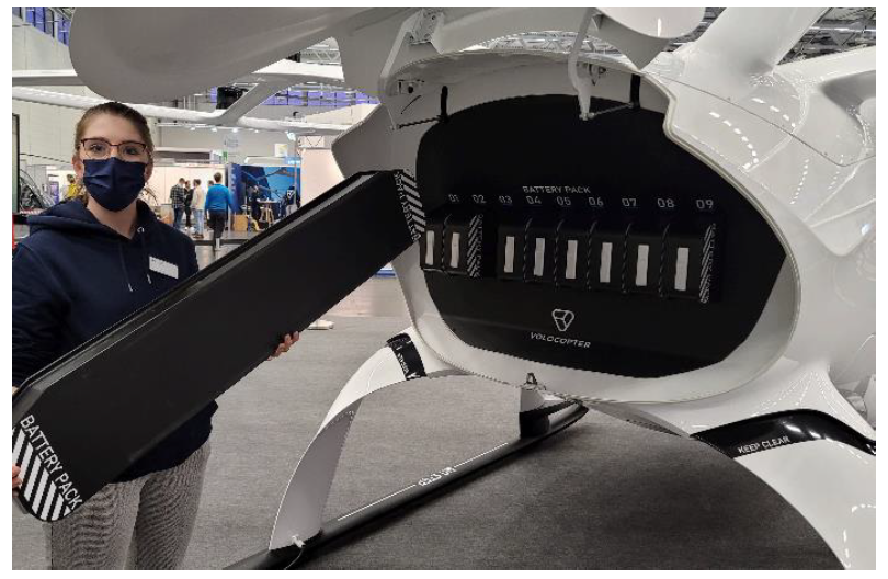 图表:Volocopter员工展示Volocity模型机换电