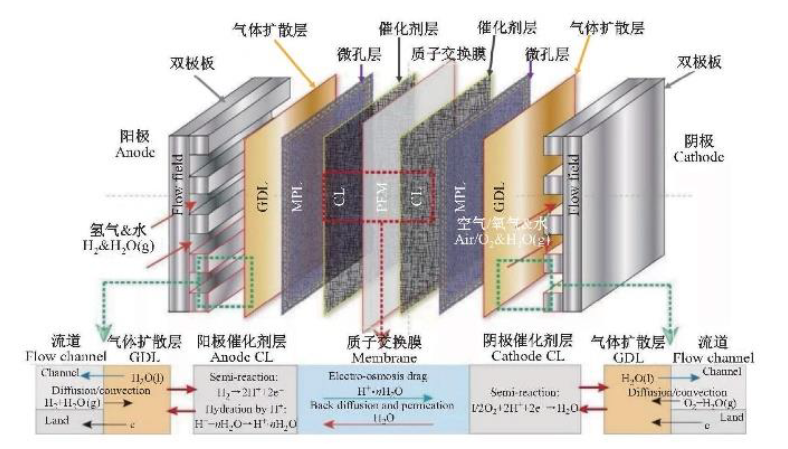 图表:质子膜燃料电池单体电池结构