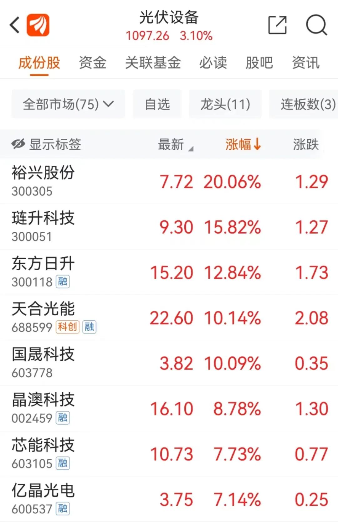 今天,光伏板块从开盘就直线拉升,虽然后续涨幅有所收窄,但最终上涨3.10%依然位居板块涨幅榜前列。