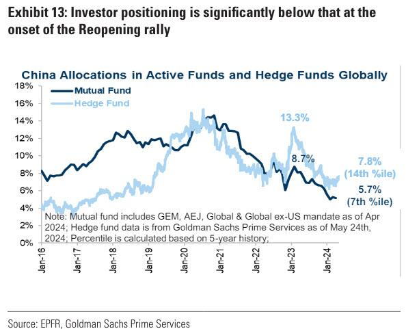 此外,投资者在中国股市的仓位仍接近历史低点,这为他们增持股票留下了空间。