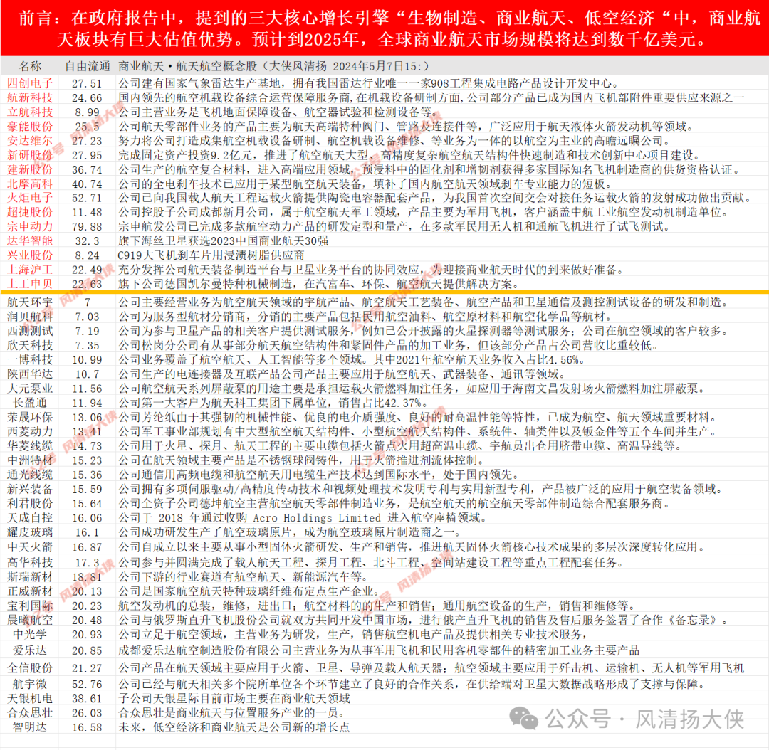 商业航空清扬说:(5月7日曾经炒作一波、大侠风清扬第一时间做的表格)