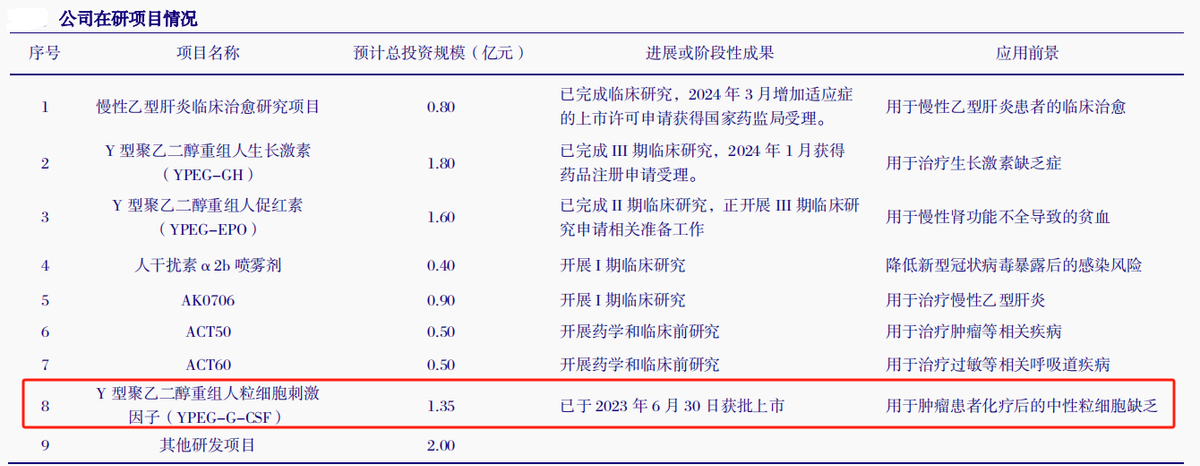其中,进展最快的当属Y型聚乙二醇重组人粒细胞刺激因子(商品名:珮金)。