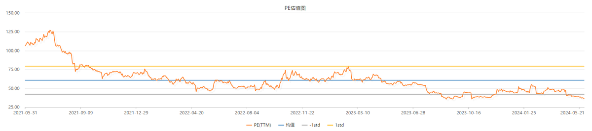 2021-2024年,特宝生物的滚动市盈率(价格除以最近四个季度每股盈利)区间在30-125倍,目前公司滚动市盈率约为36倍,处于区间低位。