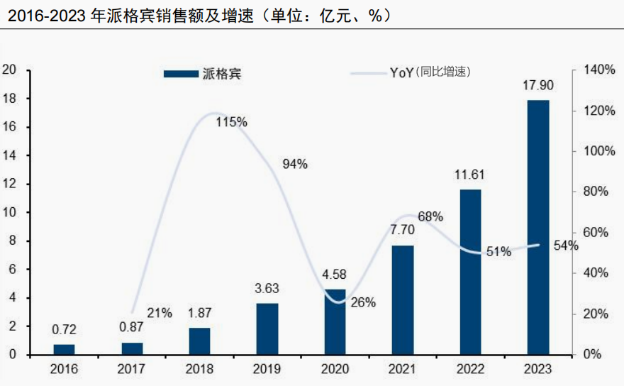 基于上述两大优势,在需求的稳增下,公司大单品派格宾放量迅速。2023年该产品营收17.9亿,已快成为20亿级的单品。