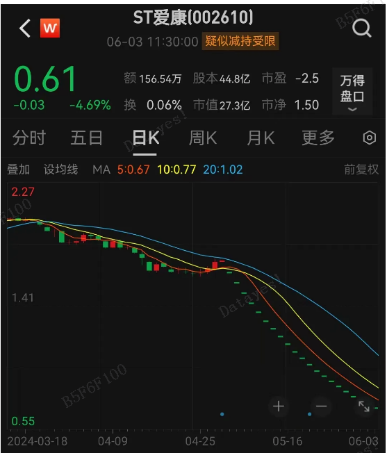 曾经的“HlT异质电池第一股”ST爱康今日再度一字跌停。自5月6日一字跌停以来,该股已经连续21个一字跌停。
