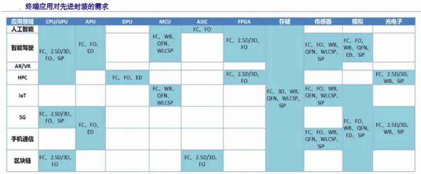 随着人工智能、智能驾驶等方向的更新迭代,目前能适配其发展需求的也就只能是第四(如SiP、Bumping、FC)或第五阶段晶圆级的封装技术(如TSV、Fan-Out/In)。