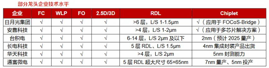 并且公司在先进封装细分技术上均取得了不同程度的进展。依靠FC、FO、RDL等技术,形成差异化优势。