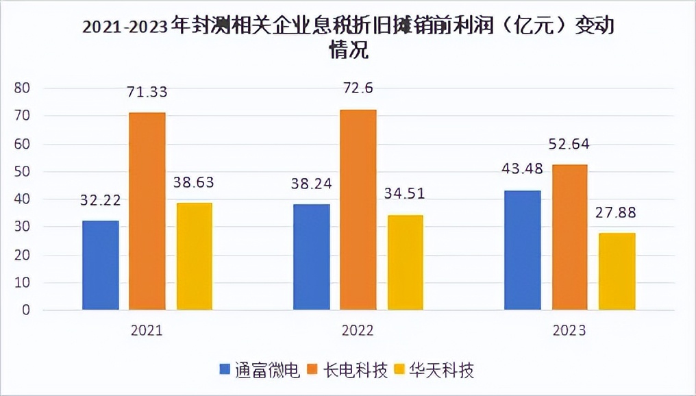 而长电科技和华天科技2023年息税折旧摊销前利润分别下滑了27.49%和19.21%。