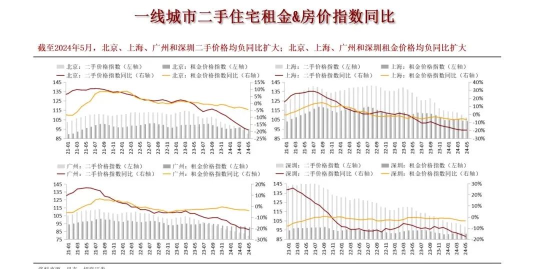 无论一二线城市,二手房价格指数的降幅都在扩大,比去年同期还低了20%。仅上海来说,5月份的二手房价格相比4月依旧环比下降了1%,并没有形成房价的反转。