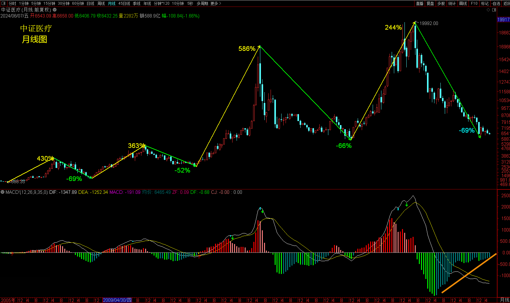 短线走势很弱,但中线不悲观,要知道物极必反!当下的医疗,如同2012年的白酒行业,极致的杀跌带来的恰恰是难得的投资机遇。医疗、生物暴跌近70%,杀跌已经非常充分,我不认为大健康赛道还有多大的调整空间。