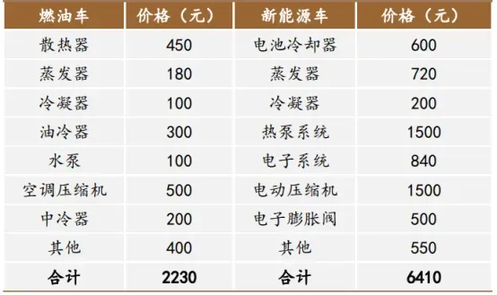 数据显示,传统燃油车热管理单车价值量在2000元左右,而新能源汽车在6500元左右,是3倍的提升。