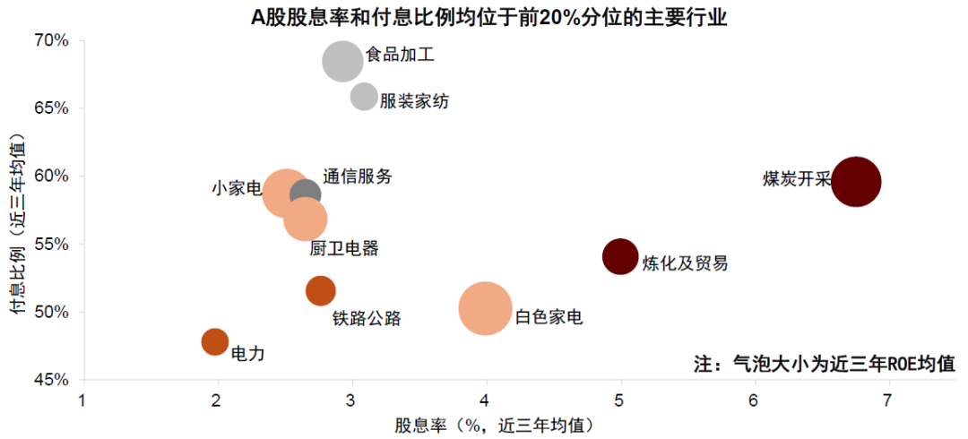 图表30:A股股息率和付息比例均位于前20%分位的主要行业