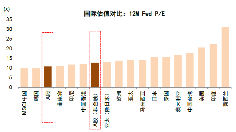 图表28:A股市场整体估值水平在全球具备吸引力