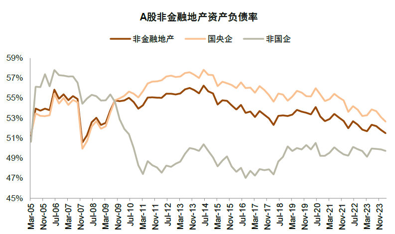 图表11:剔除房地产后,非国企资产负债率相对平稳