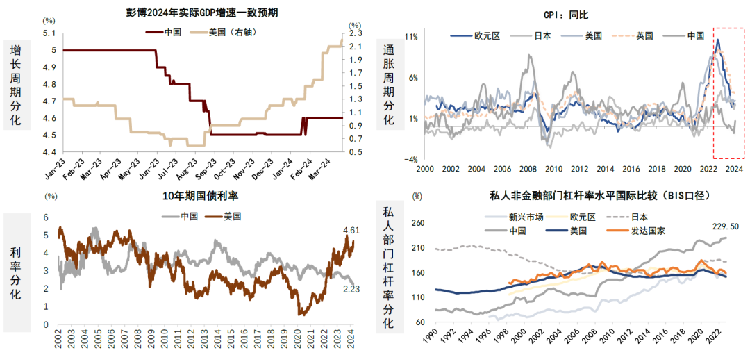 中金策略团队在近期发布的《新宏观策略研究(一):大分化时代的资产配置》中认为全球宏观范式出现重大转变,世界经济格局步入“大分化”时代,我国与部分海外主要经济体宏观周期的联动减弱,在增长、通胀、利率和私人部门杠杆率这四个关键维度上持续分化。分化形成的内生力量,首先是我国与欧美国家之间金融周期的异步,进而导致中美之间形成了镜像的内部供需失衡,即中国需求不足,美国供给不足,这种宏观范式转变对我国经济带来深远的结构性影响。从当前的经济和政策环境来看: