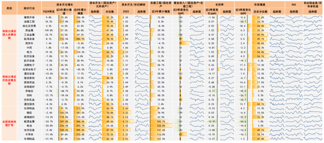 图表13:各细分领域的供给侧扩张与出清的情况
