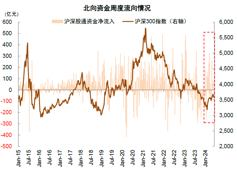 3)资金面:年初至今险资、宽基ETF流入和北向资金的回流是重要的增量资金来源,这对大盘风格占优起到了支撑效果,市场资金面紧平衡环境相比去年改善。