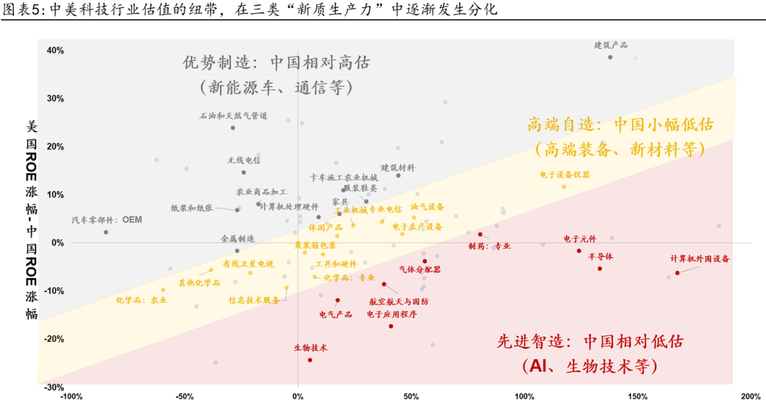 可能会引发“技术大爆炸”,并提升底层经济效率;相对明显低估,融资可得性差,亟待“科特估”;没有现成的技术路径,需要企业不断研发试错(边界计划);改善营商环境,优化上市制度,有助于“先进智造”转型升级。