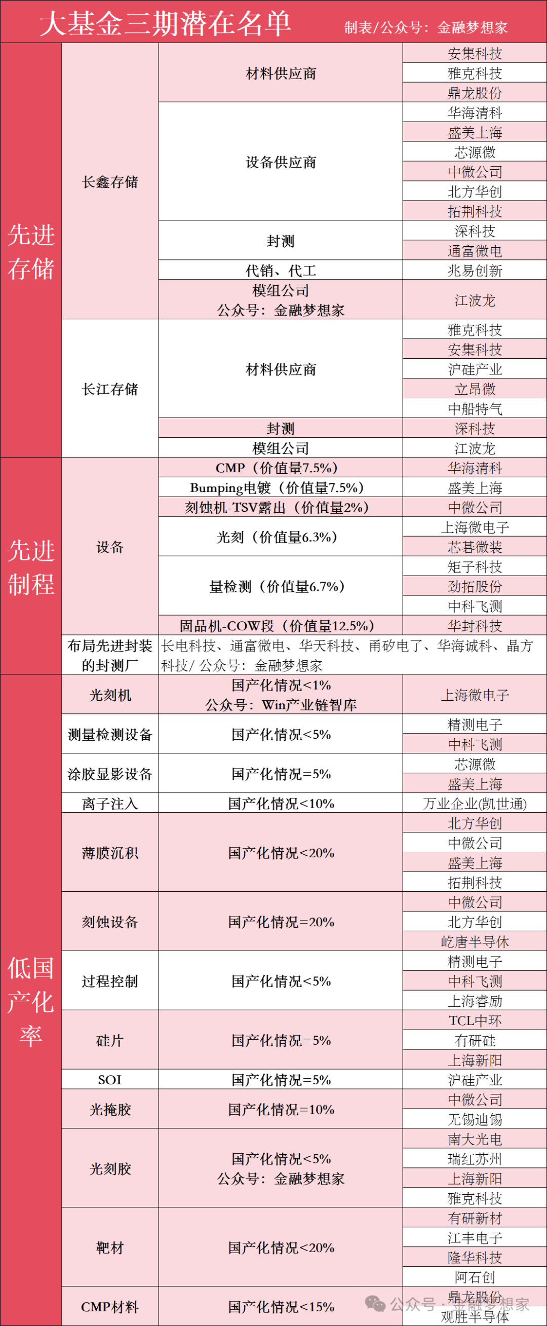 大基金三期潜在名单梳理: