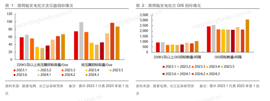 1-4 月电网建设累计投资额同比增长 24.9%。从国网第三批次输变电招标看,第三批次输变电主要设备招标数量同比实现增长,相比 于今年第一、二批次同比增速改善明显。据统计,第三批次 220KV 及以上变压器、GIS、 保护装置的招标量分别同比增长 20%、53%、46%。