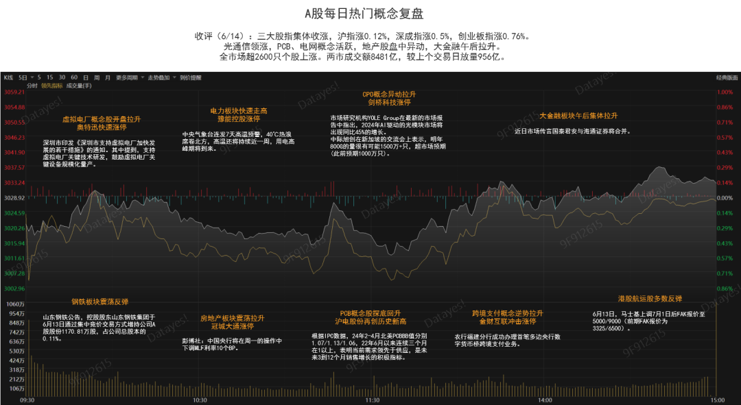板块上,AI相关的CPO、AI芯片、PCB板块涨幅都比较大,其次就是受益于利好催化的虚拟电厂、高压快充等概念全天表现强势。