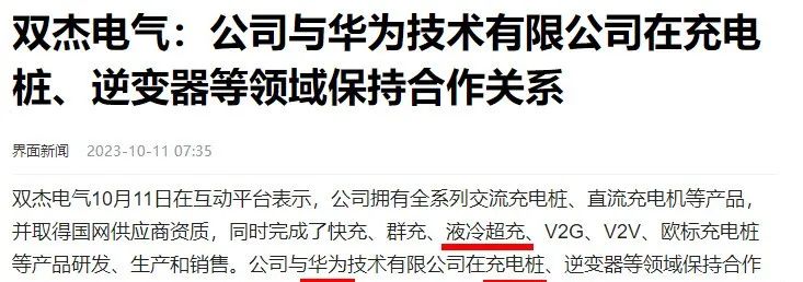 双杰电气:合作华为充电桩+液冷超充