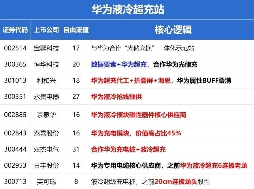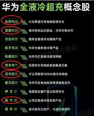 a. 华为的超充技术带动了相关产业链的发展。永贵电器、利和兴等企业有望从华为的超充桩放量中受益。永贵电器的产品如高压连接器、液冷充电枪等已进入多家知名汽车品牌的供应链。