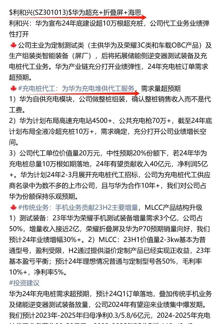 利和兴:华为超充代工+折叠屏+海思,华为属性BUFF叠满,热点叠加