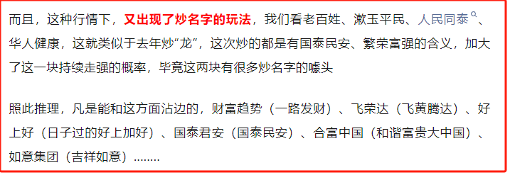 1、昨天娘子说市场又开始炒名字玩法了,类似于去年炒“龙”,结果今天果不其然,老百姓、漱玉平民、人民同泰连板,好上好涨停,其他一些名字有美好愿景意思的,也都或多或少有拉升异动