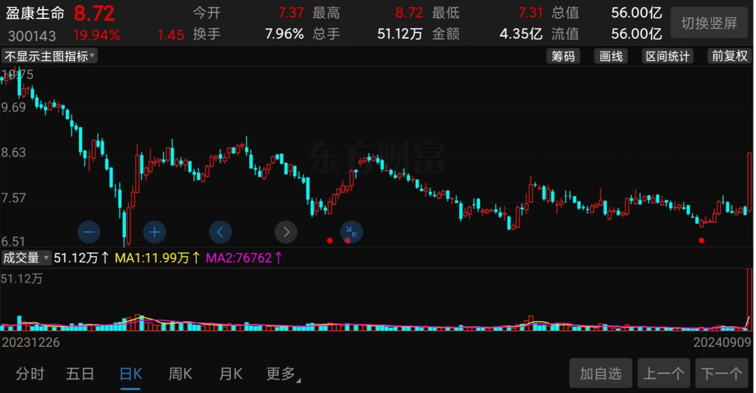 盈康生命市值重新站到50亿上方,应该也有控股股东增持的功劳。