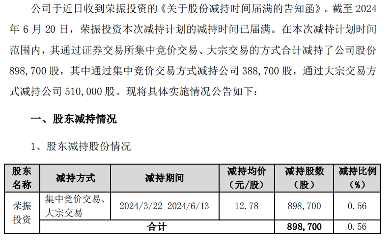 透景生命股价走成这个样也怪不得别人,自去年下半年以来市场及各方都在呼吁大股东不要减持,但是今年3月15日透景生命发布了一份减持计划,特定股东荣振投资拟通过集合竞价或大宗交易方式减持163.77万股,到6月20日减持届满,荣振投资合计减持89.87万股,减持均价12.78元/股,以此计算,套现1148万。