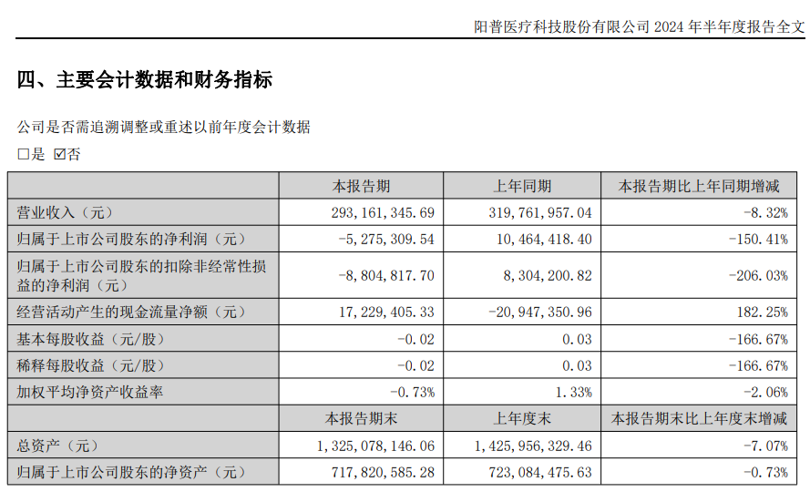 然而,阳普医疗半年报显示,今年上半年营收2.93亿、同比下滑8.32%,亏损527.53万、同比下滑150.41%!