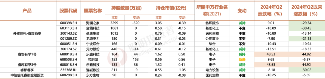 而睿郡减持的海澜之家和连城数控,从二季度以来跌幅都超过了29%。