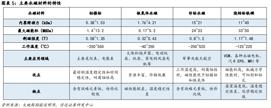 1)永磁材料的目标是不断追求更高的矫顽力,强化不退磁能力,在永磁电机中应用较多;