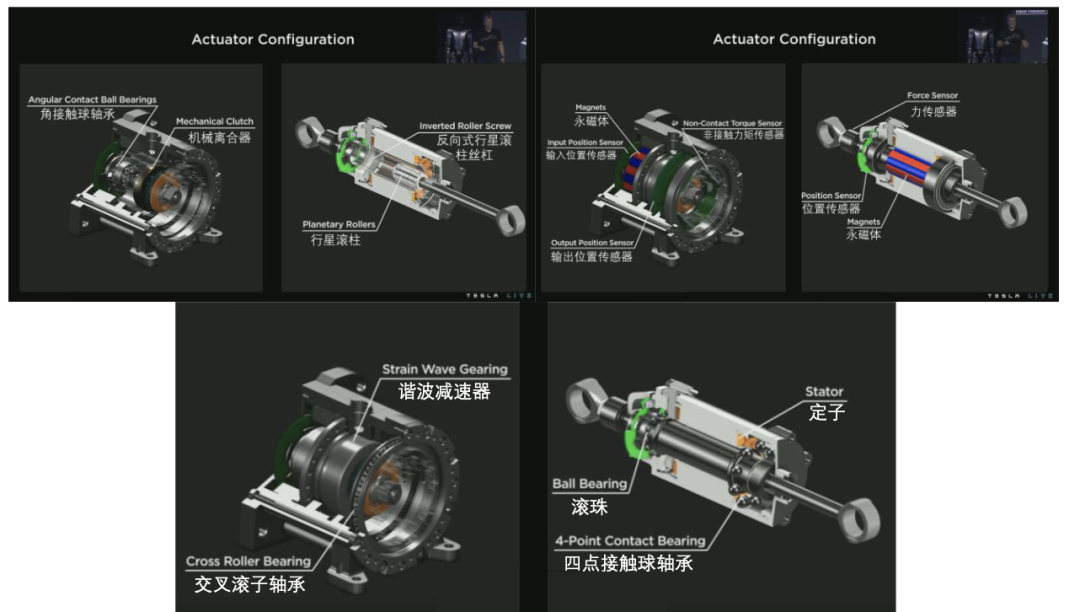 特斯拉人形机器人执行器分为旋转执行器和线性执行器2大类型6种规格。